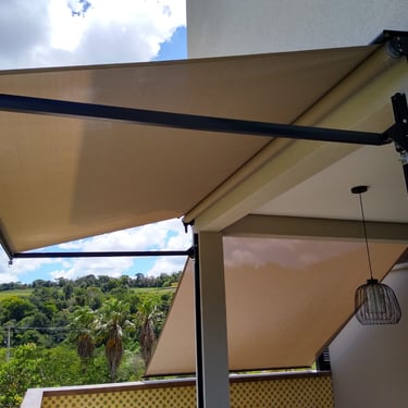 Toldo com braço reto e trilho deslizante personalizado para ambientes diversos